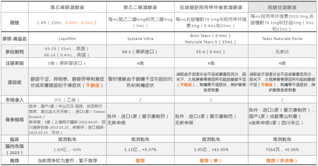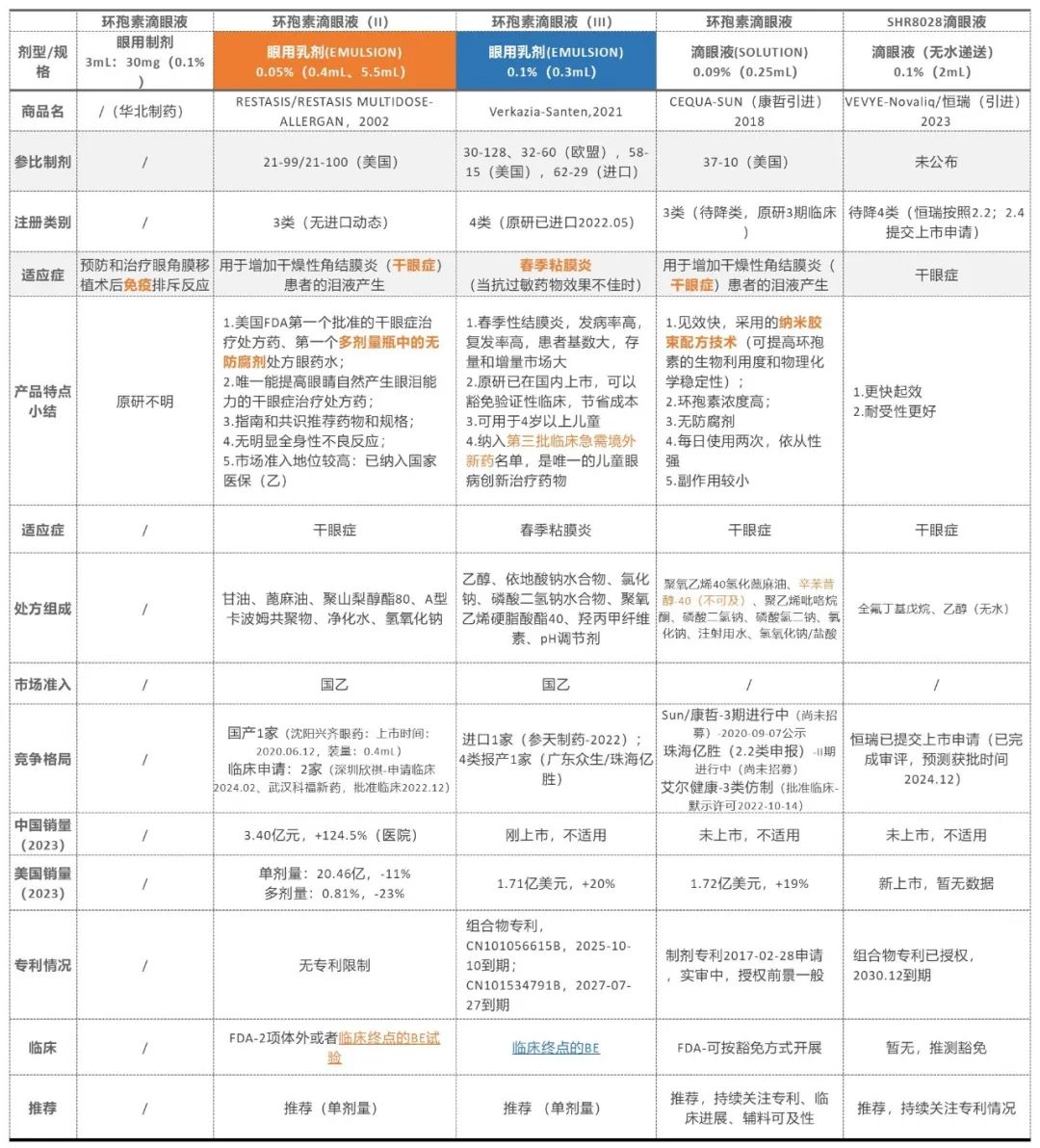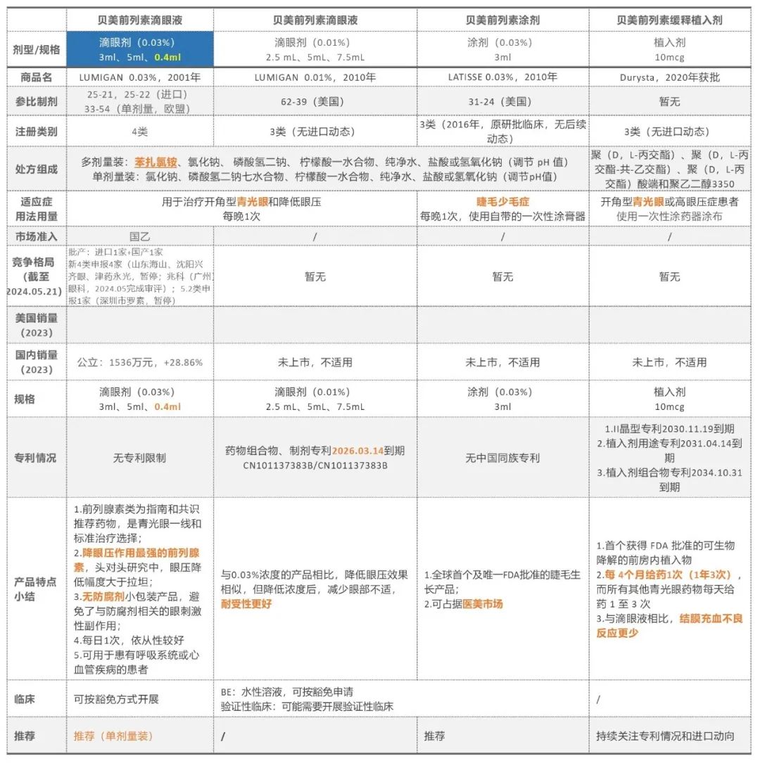 建議開發單劑量裝0.03%滴眼液、改善安全性的0.01%滴眼液、醫美涂劑,持續關注植入劑進口動向和專利情況。