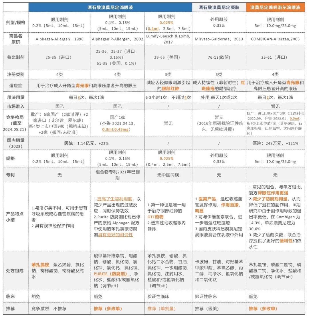 建議開發改善安全性的0.01%/0.15%滴眼液、低濃度0.025眼部紅腫產品、復方制劑,持續關注醫美外用凝膠進口動向。
